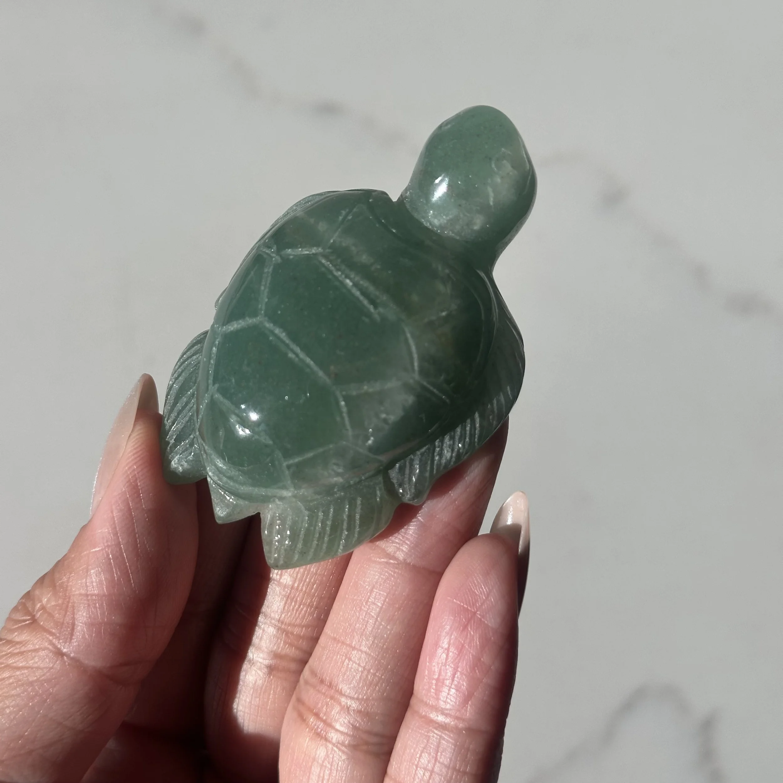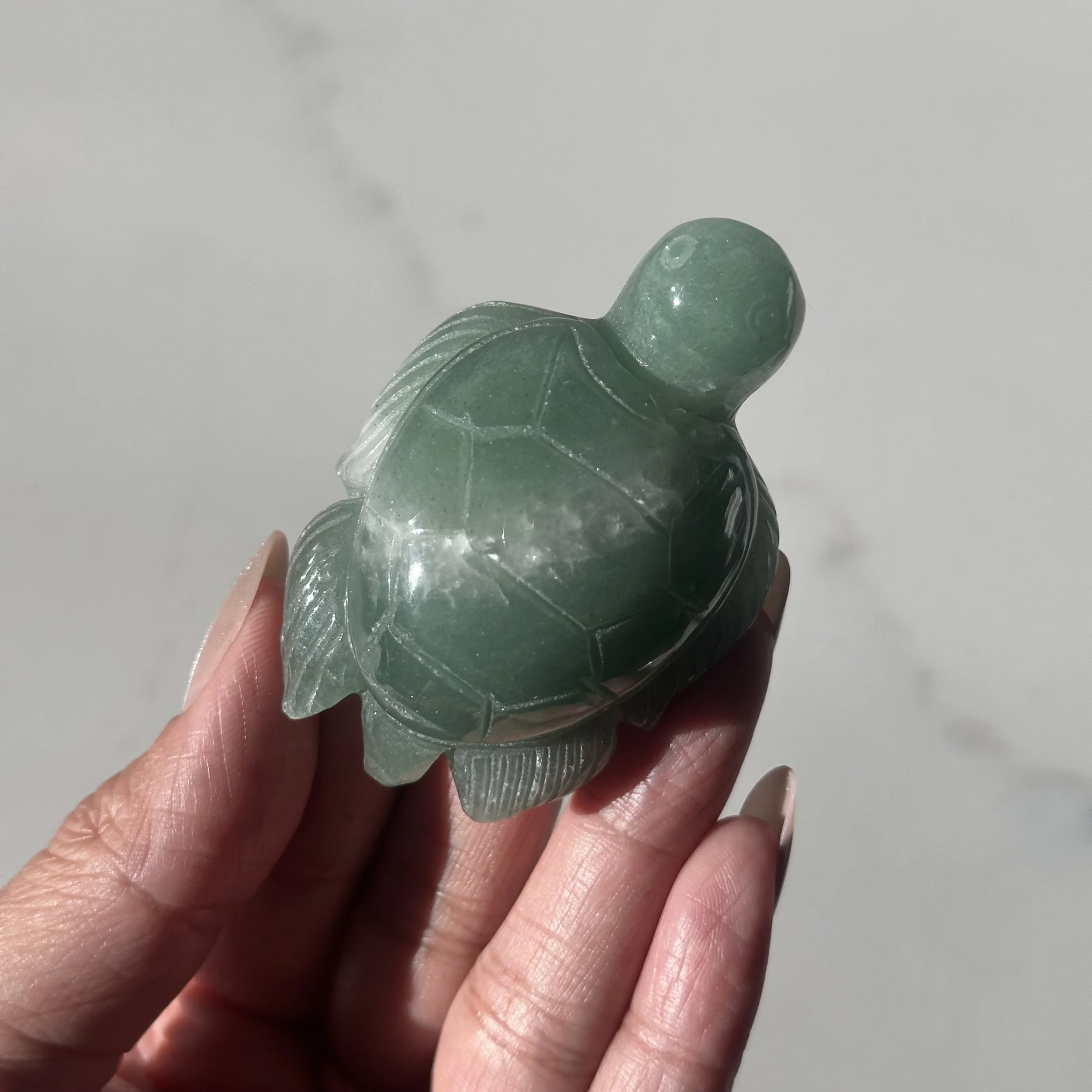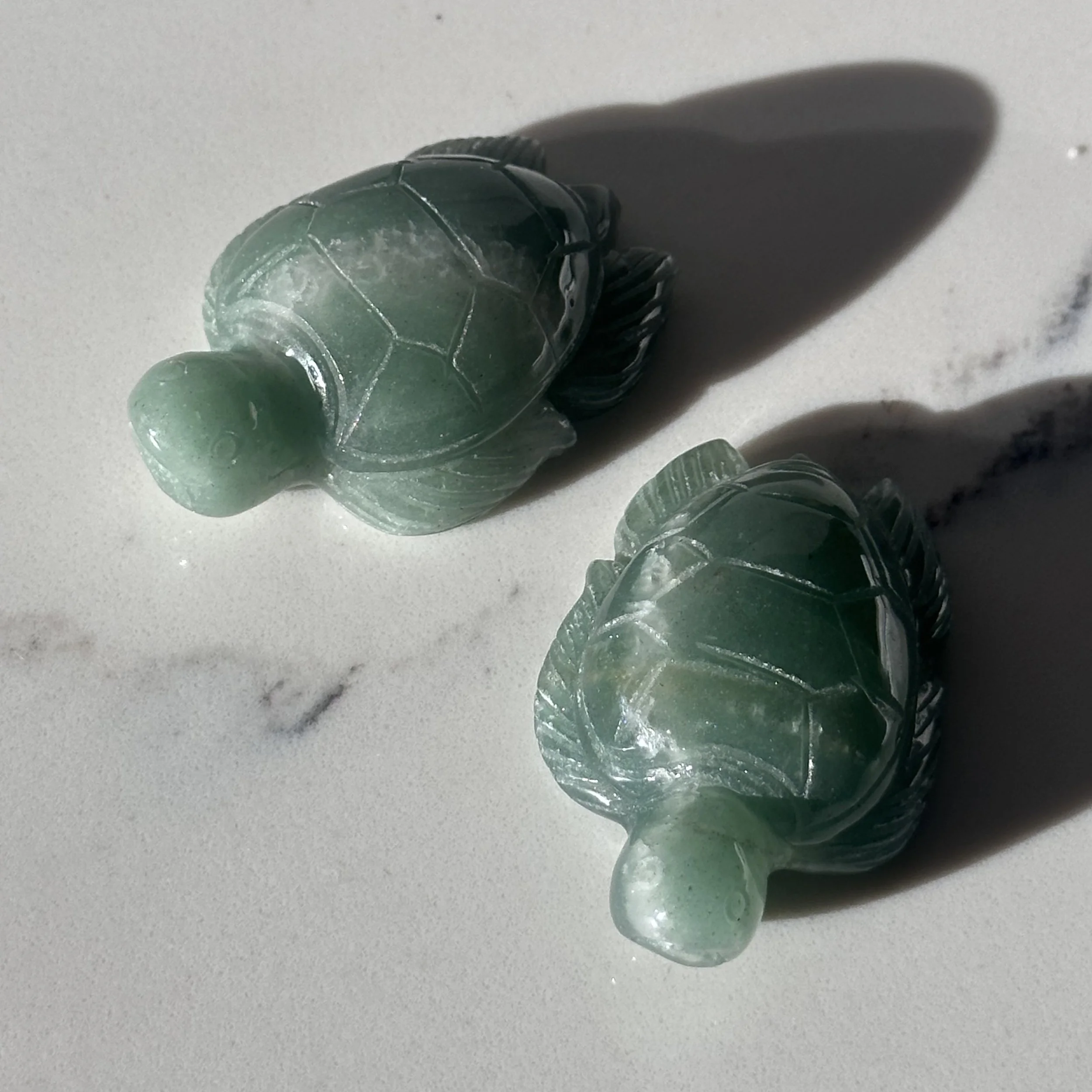 Shop › Fluorite Mini Turtle Image 1 of 3 Image 2 of 3 Image 3 of 3 Fluorite Mini Turtle $12.00 Focus - Creativity - GrowthApprox. 1.6" x 1"Intuitively selected Color: Select Color Green Yellow Quantity: Add To Cart Added! Focus - Creativity - GrowthApprox. 1.6" x 1"Intuitively selected You Might Also Like Green Aventurine Sea Turtle $16.00